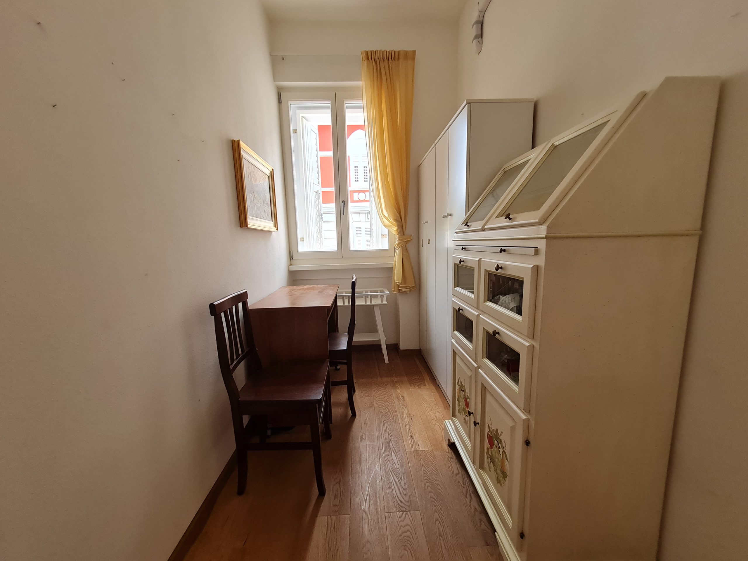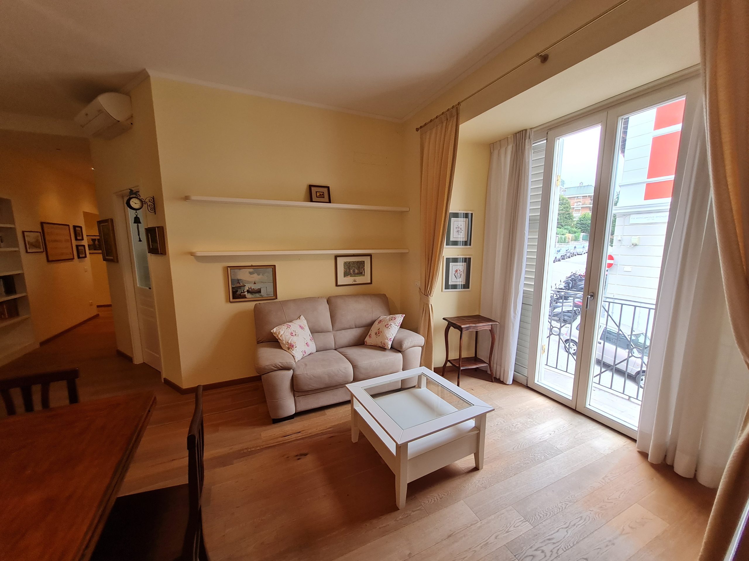 Located on Via Buonarroti, in an elegant, recently renovated four-family villa, this elegant, furnished apartment of approximately 82 square meters is on the mezzanine floor. It comprises an entrance hall, a spacious living room with balcony, a kitchen, a bedroom, a small bedroom/study, a bathroom, a closet, and an uncovered parking space in the internal courtyard. It features underfloor heating, air conditioning, a security door, elegant interior finishes, and is in excellent overall condition. It is located in a quiet residential area, practically in the city center, just steps from Via Rossetti and Viale XX Settembre. Monthly rent: €1,050.00 + €50.00 condominium fees. Rented exclusively to referenced individuals with adequate income documentation.